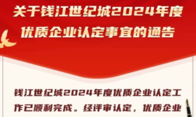 喜訊!杭州恒領(lǐng)科技有限公司獲評錢江世紀城 2024 年度優(yōu)質(zhì)企業(yè)